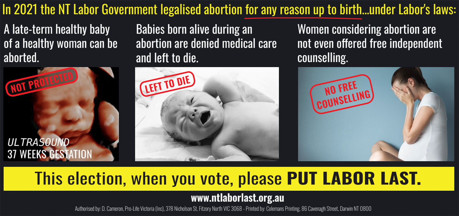 Therefore, the statement on the flyer "A late-term healthy baby of a healthy mother can be aborted" under the NT Labor Government's abortion laws is absolutely true, tragically.